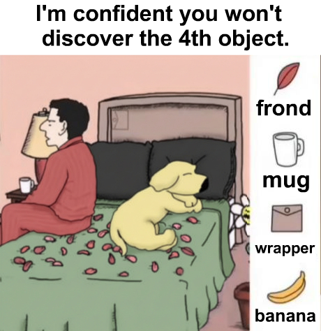 The dog in the scene provides a comforting, familiar anchor that draws your eye, but it can also serve as a distraction from the objects cleverly tucked nearby. Everyday items disguised as part of the background challenge your brain to reframe what you’re seeing and pay closer attention to details that might otherwise be ignored.