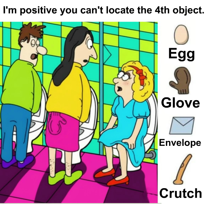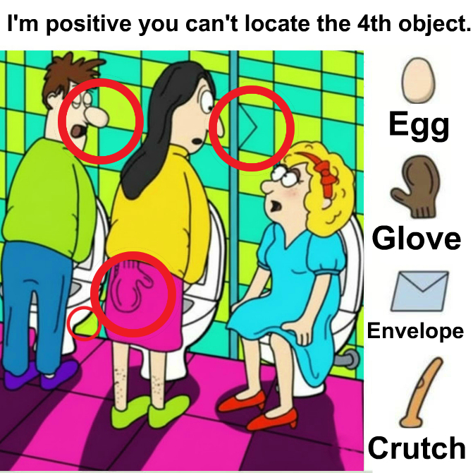 Find an egg, a glove, an envelope, a crutch. The ultimate spot-the-difference challenge: Can you find the 4th object?