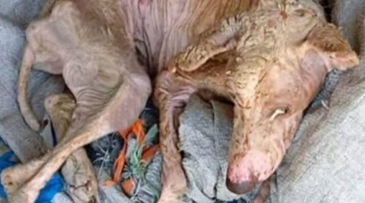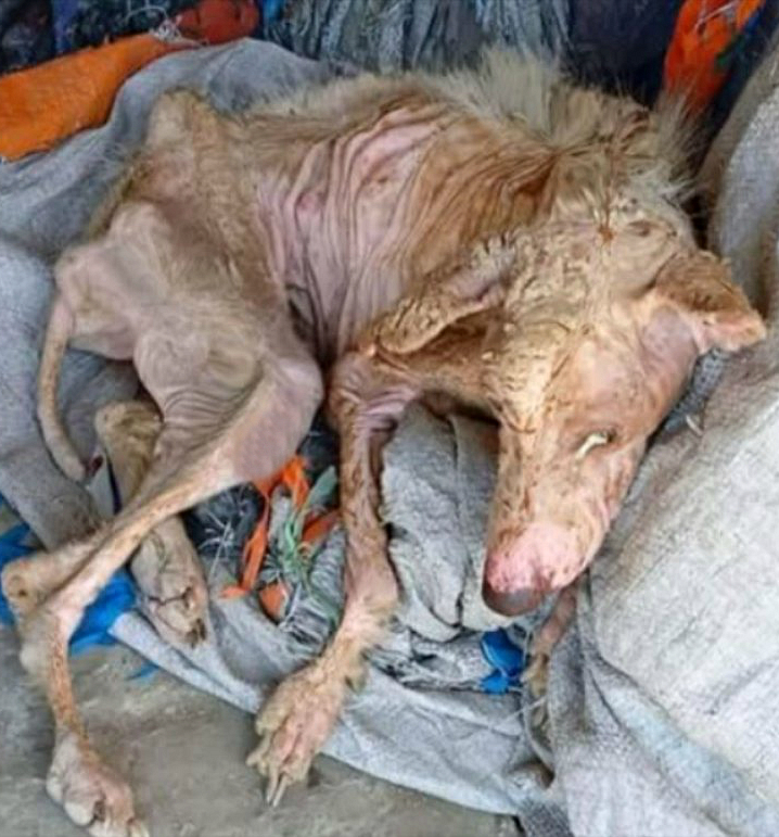 She lay on a piece of dirty sackcloth, curled up as if her body no longer belonged to life. Every rib jutted out, her legs looked foreign and powerless, her gaze glassy — as though she had long accepted that the end was inevitable. The sky above her felt distant and indifferent; passersby either didn’t notice or turned away, and only the wind touched her skin, tugged at the remnants of her fur, and carried away the last traces of her suff℮ring.