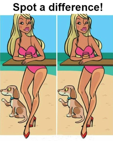 Get ready for another visual perception challenge with “Find the Difference: The Woman on the Beach”! In this image, we see a blonde woman enjoying a sunny day with her faithful four-legged companion. As she relaxes with a refreshing drink in her hand, the scene seems perfect… or is something wrong?