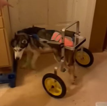 To give Maya a chance at mobility, she was fitted with a custom-made wheelchair for dogs.