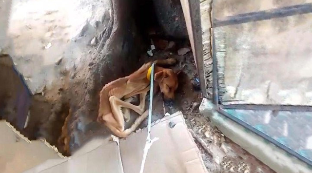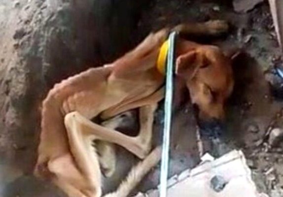 Rescuers responded to a distress call about a leashed dog and were confronted with a heartb.r ℮aking scene: an emaciated dog, barely able to stand, chained outside.