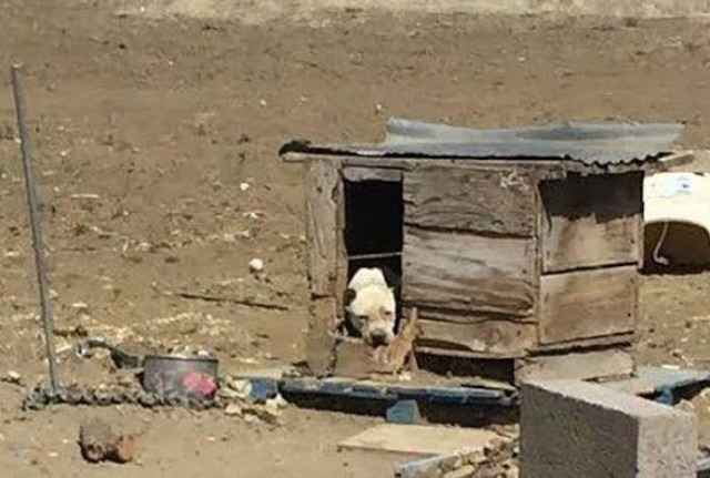 When volunteers found Violet, she was approximately two years old—and there are strong indications that she had spent almost all of that time chained. In New Mexico, leaving dogs chained without human supervision is prohibited; however, Violet and five other animals were discovered in an abandoned area.