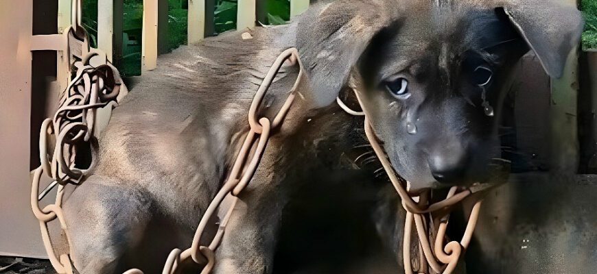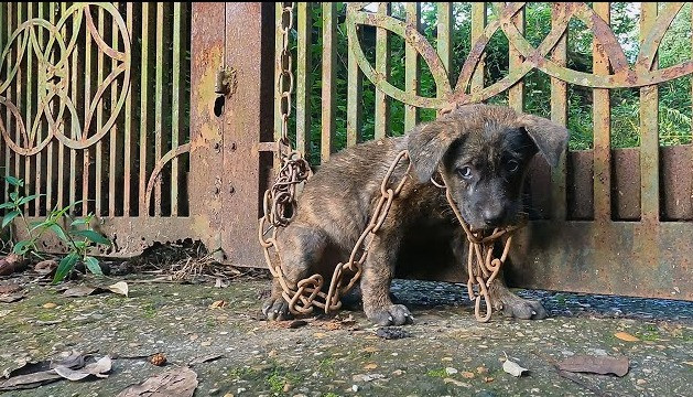 The observer, confronted by this pi.t ìful sight, felt a surge of compassion that surpassed mere p.i ŧy. He approached and saw that the puppy was chained to the gate—not just a stray, but an animal in physical and emotional ca.p ŧivity. This action marked the beginning of change, not just a random act of kindness.
