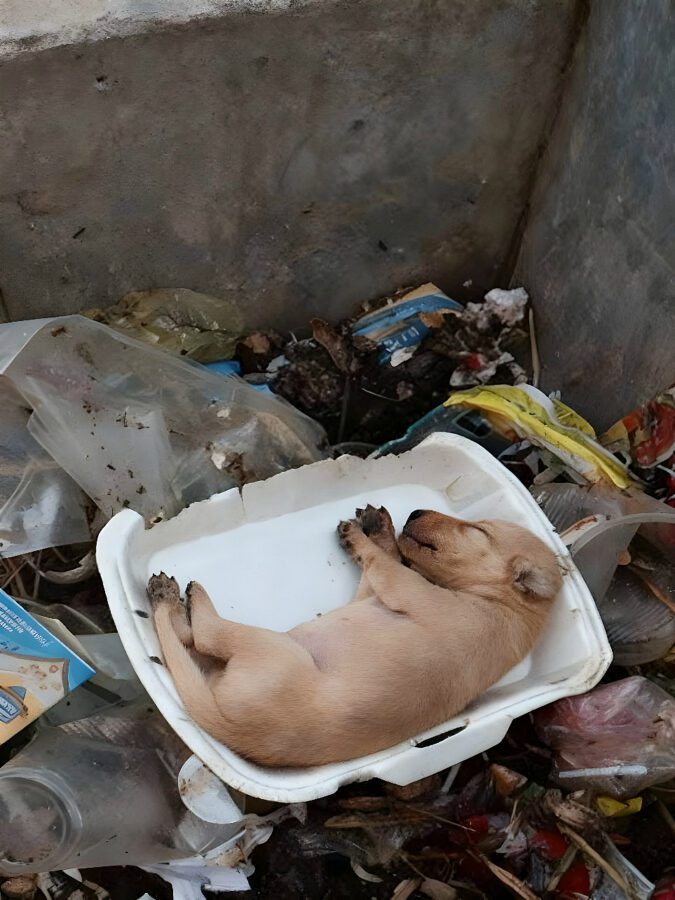 The incident that occurred in a small community was not the result of the efforts of a sanitation worker, but was provoked by a curious girl named Elara. Her bright ball, playing in the yard, unexpectedly fell into a forgotten trash can. When the girl looked into the darkness, she did not find her toy, but instead witnessed a scene that will forever remain in her memory: a tiny, newborn puppy, no bigger than the palm of her hand, resting in an abandoned food container. Its eyes were still closed, its breathing shallow — just a tiny breath of life against the backdrop of general de.c αy. The unpleasant smell of neglect enveloped this little one, but within it was a silent plea for warmth and a chance at life. Elara, only eight years old, instinctively felt the profound injustice of this exposure – against the backdrop of infantile vulnerability, the world was marked by c.r ∪el indifference.