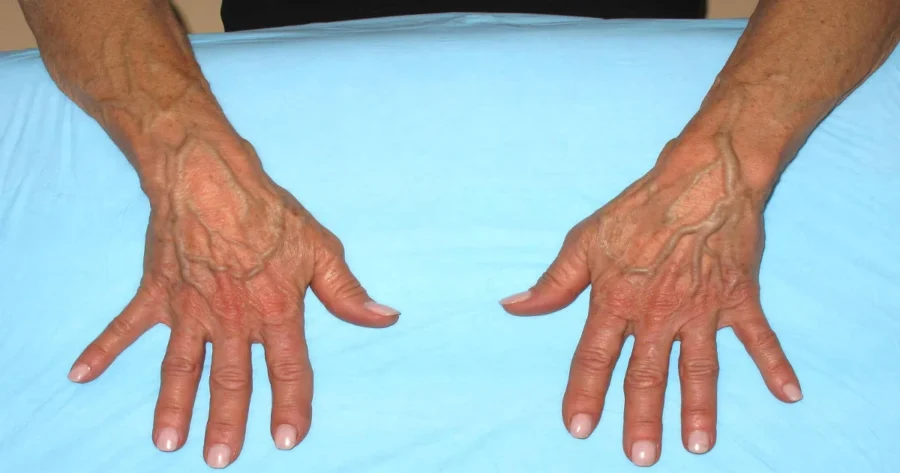 - Aging: As we age, our skin removes elasticity and becomes thinner. This allows underlying structures like veins to show through more easily.
