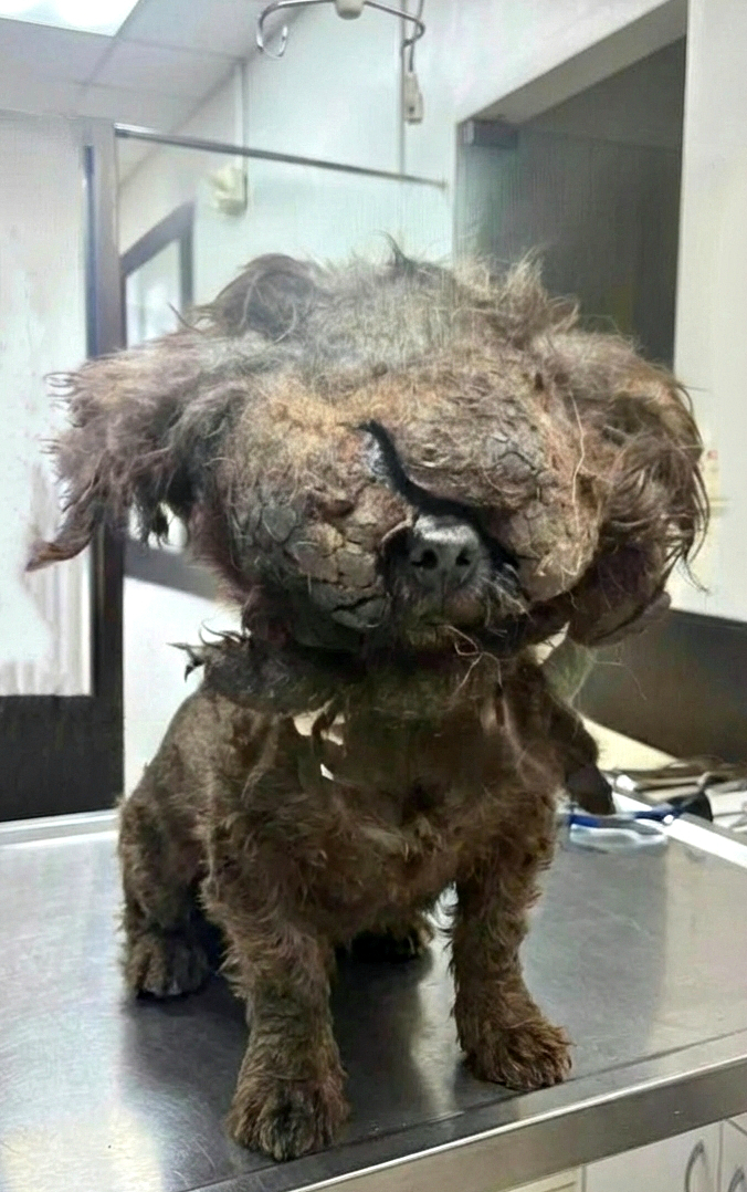 At North Central Shelter, the team had to delicately remove 2.2 pounds of filth from her tiny 5.5-pound body.