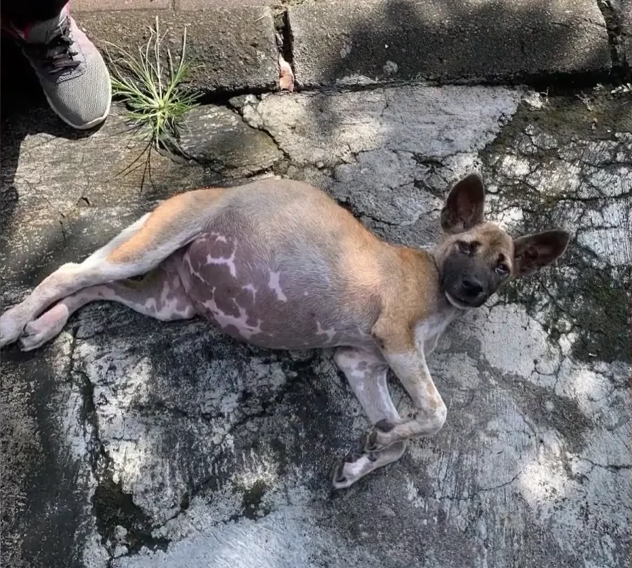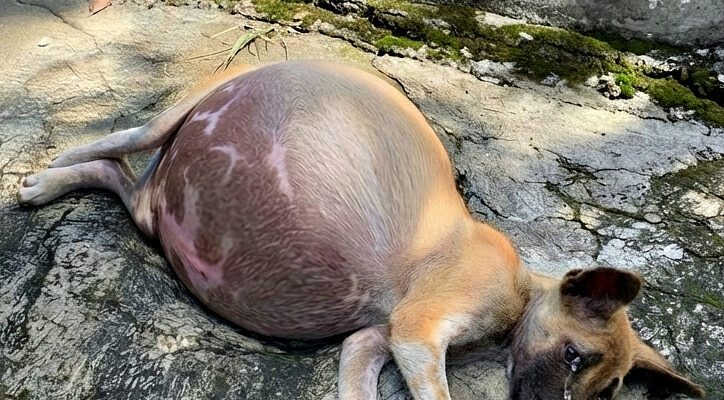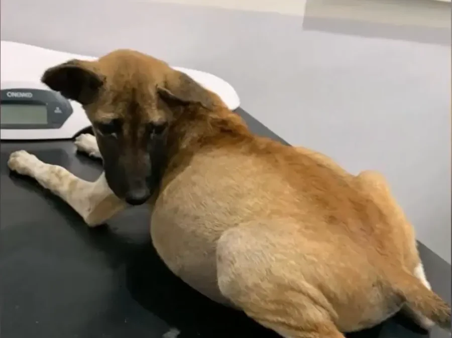 His body was thin, bones clearly visible under his skin, but his stomach was frighteningly swollen.