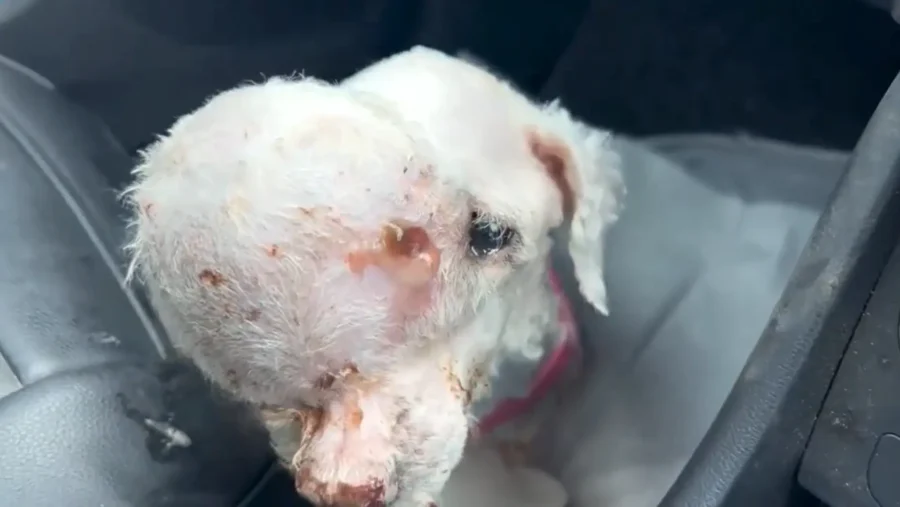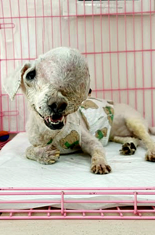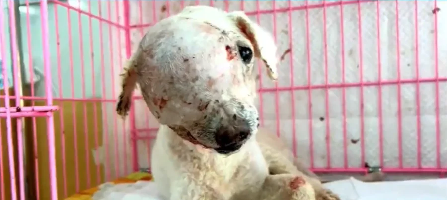 This dirty, disheveled dog had a huge t.u ḿor on its head.
