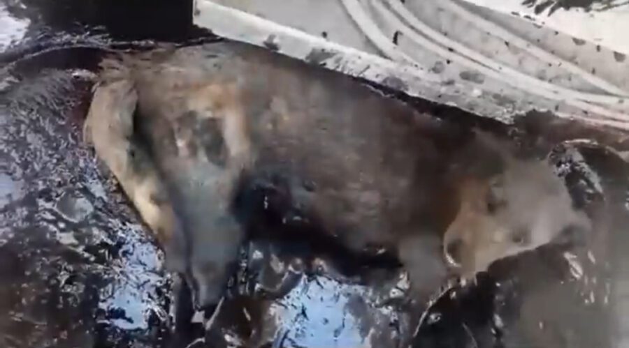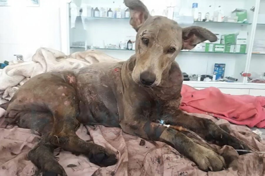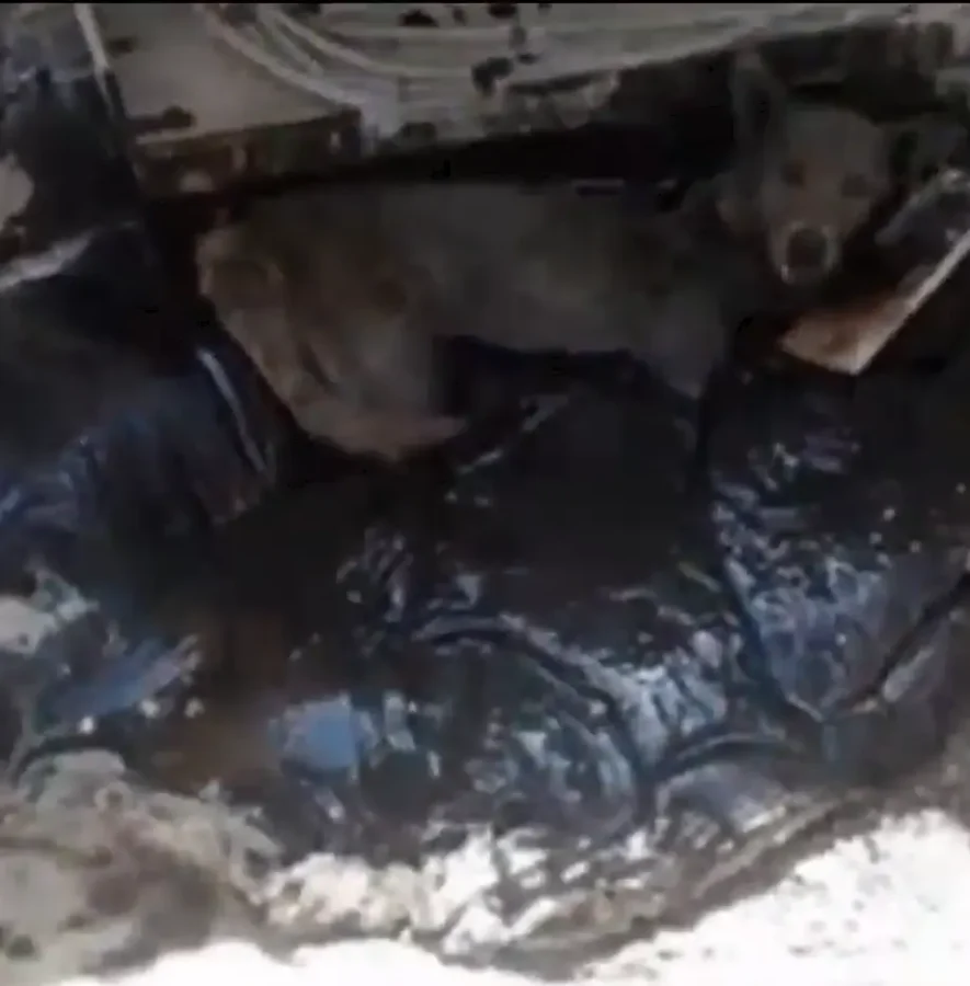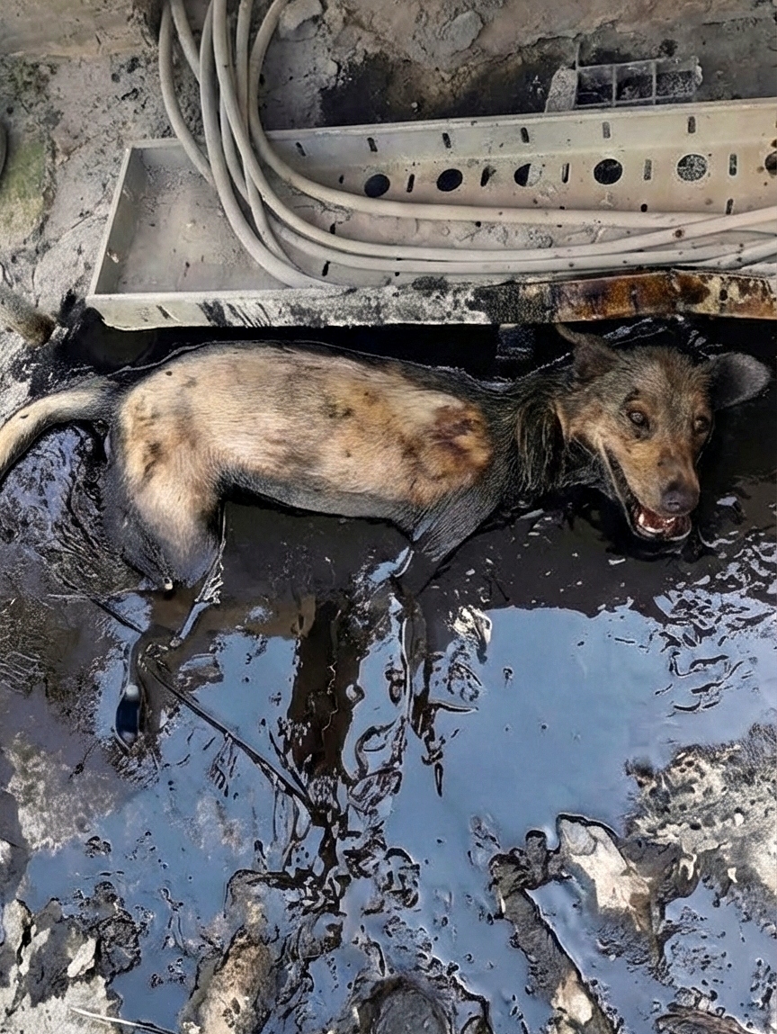 We are trying to save this mother dog. While desperately searching for food, she fell into a pit of boiling asphalt.