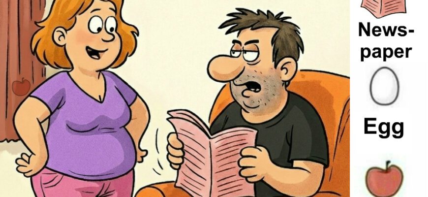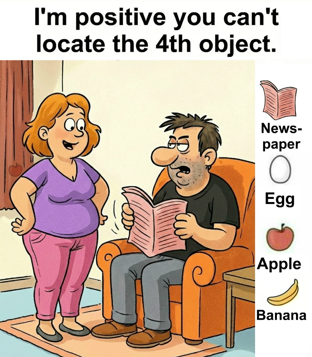 Find Newspaper, Egg, Apple, Banana.