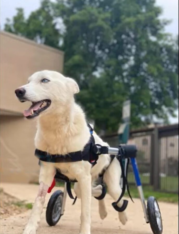 Soon she started moving her back legs in a walking motion while supported in her wheelchair.