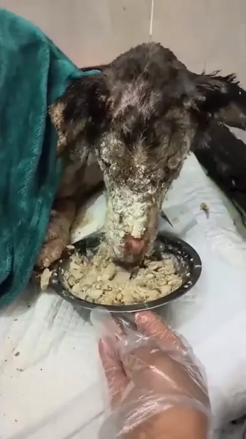 Today, we cleaned him again using healing solution and applied oxytetracycline powder