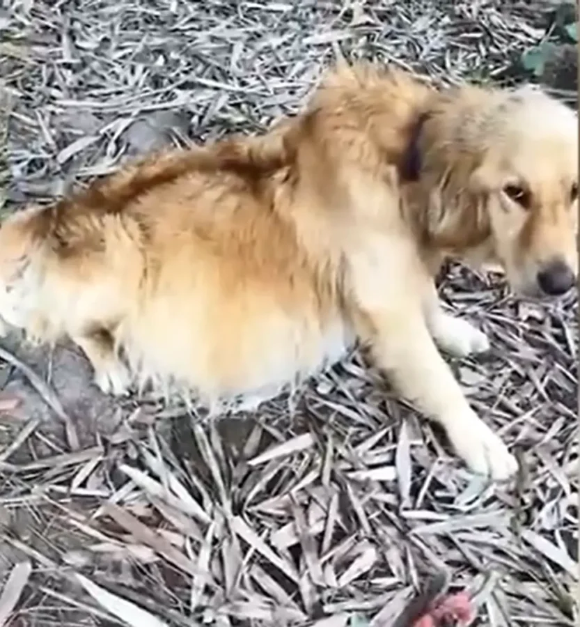 The dog’s face and limbs were extremely thin, while its abdomen was massively enlarged.