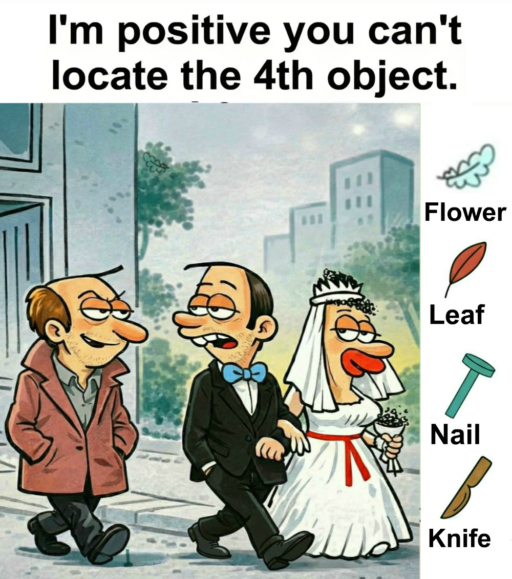Find Flower, Leaf, Nail, Knife.