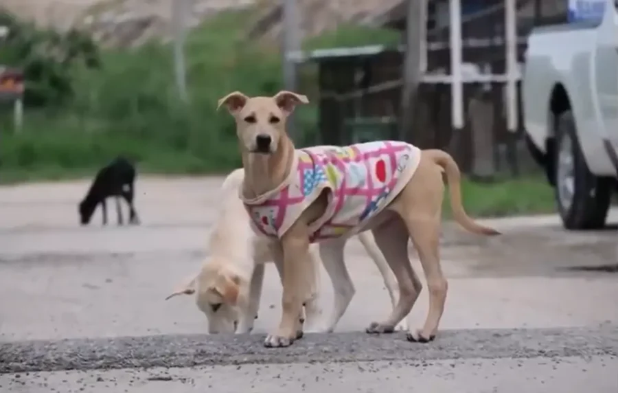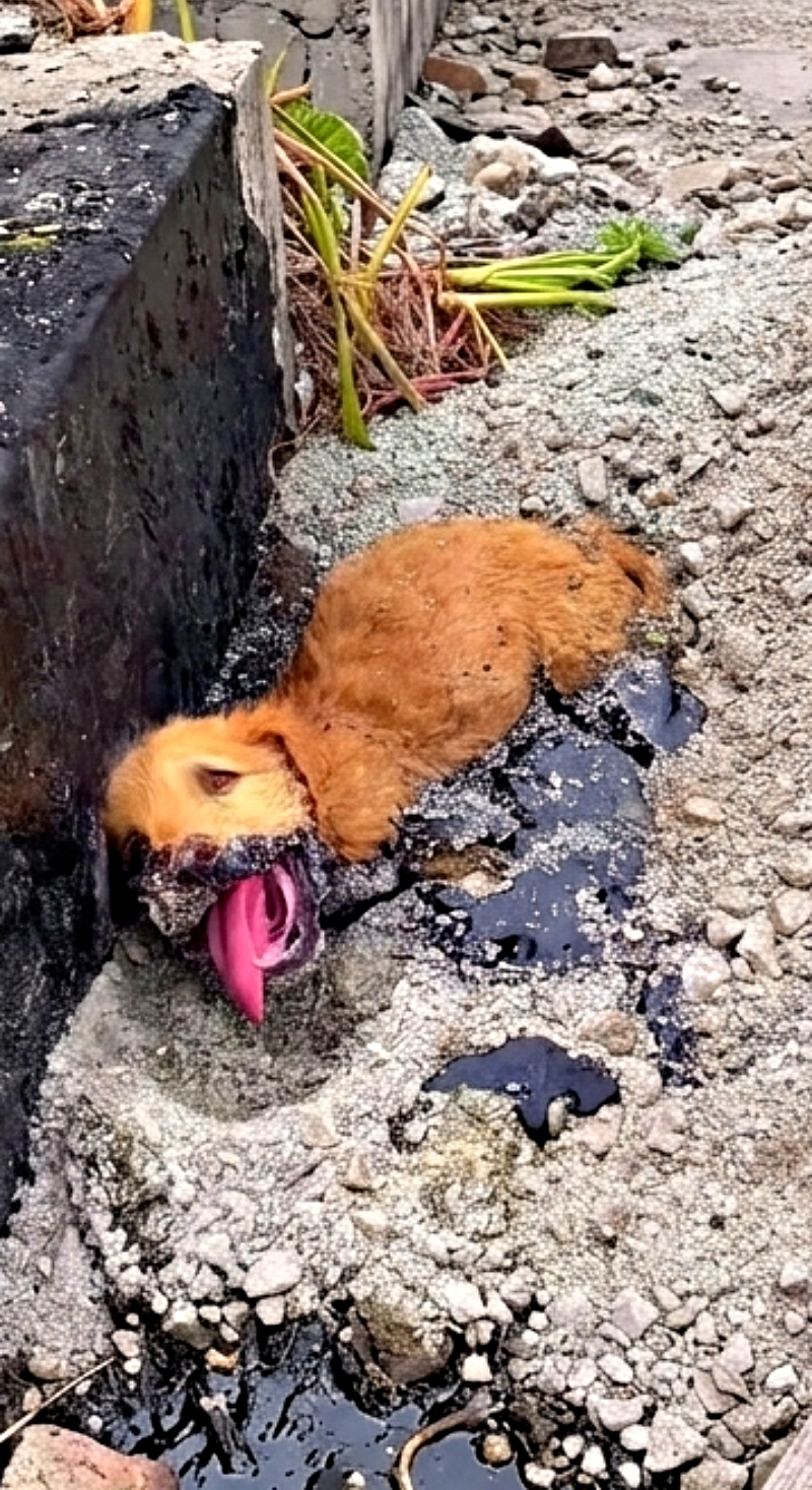 We accidentally found a little puppy stuck in the tar