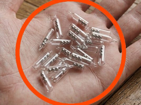 Instead, I found a small bag filled with tiny sealed glass tubes. Inside each one were several small silver balls. They looked unusual — almost like frozen drops of metal trapped inside clear capsules.