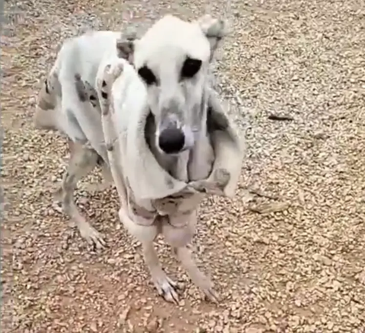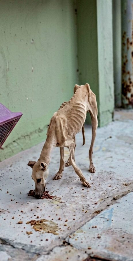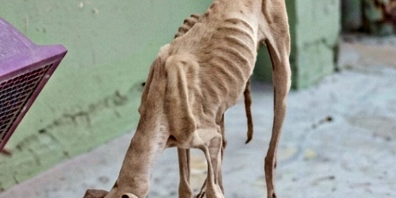 It is heartb.r ℮aking to see a dog like this in modern society, where so many people worry about obesity and food waste.