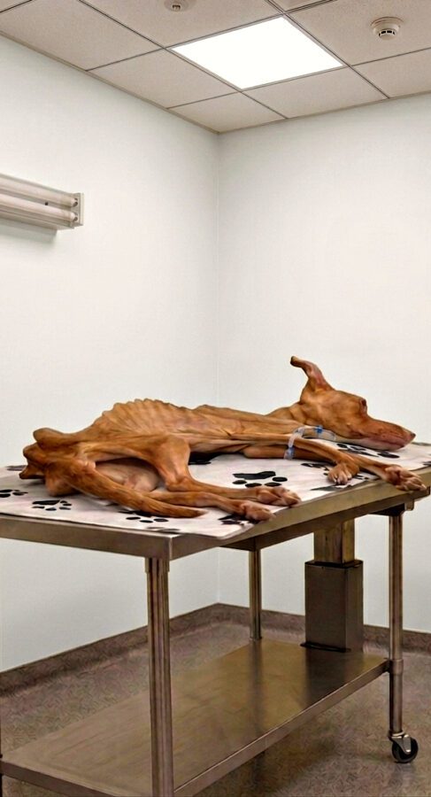 I’ve never seen a dog so thin—only 17 pounds (7.7 kg).