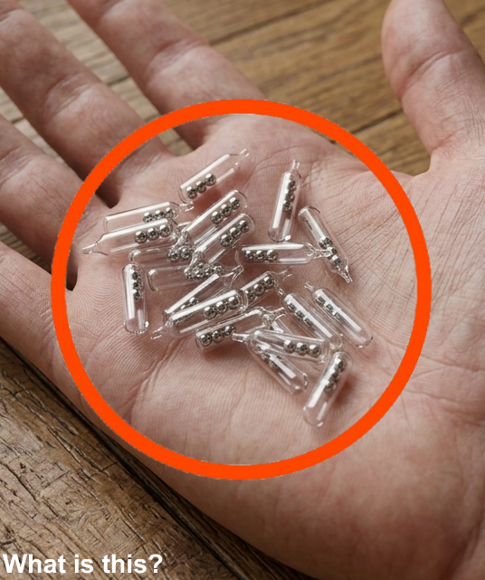 Instead, I found a small bag filled with tiny sealed glass tubes. Inside each one were several small silver balls. They looked unusual — almost like frozen drops of metal trapped inside clear capsules.