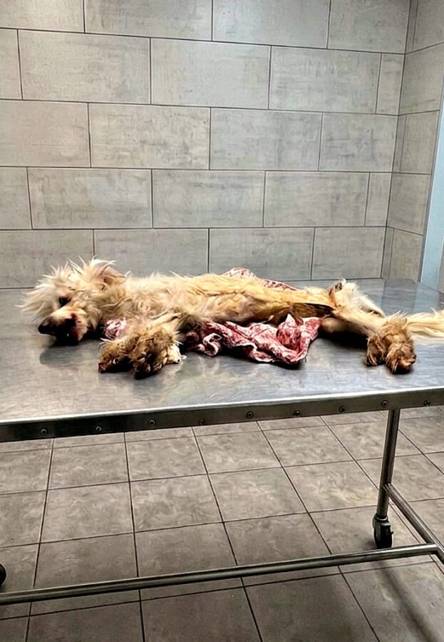 His body was nothing but bones, his fur hiding w.o ∪nds that told a story of p.a ìn and neglect.