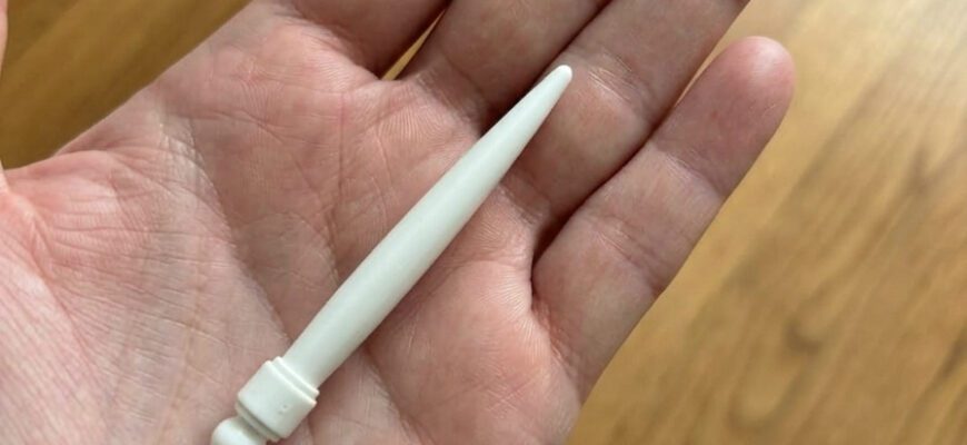 Small, made of white plastic, with a long pointed shape… just lying there as if it had appeared out of nowhere.