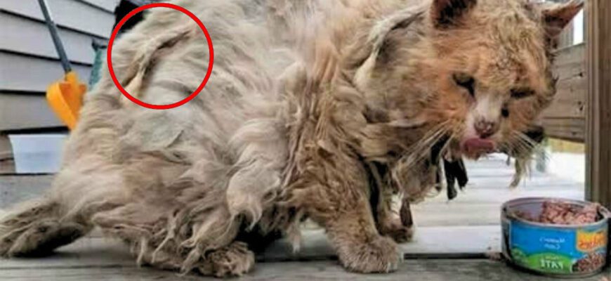 His fur was a tangled mess of mats and dirt, the kind of coat that told a story of long, hard months on the streets.
