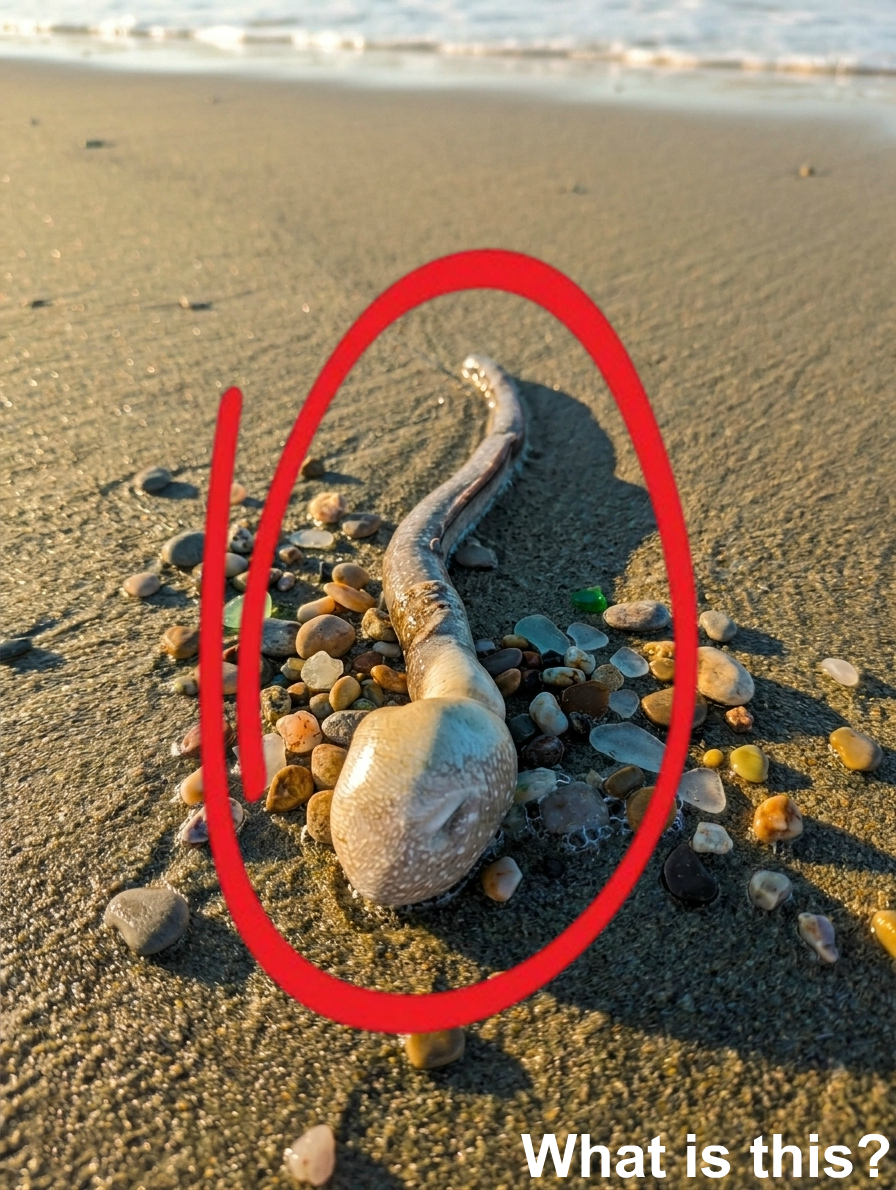 At first, it looked like something really strange — almost unreal. A long body like a snake, with a large swollen “head” at one end… pretty unsettling.
