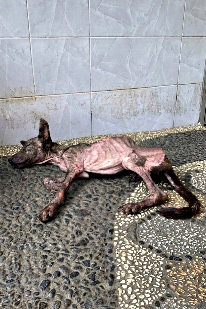 Every rib and bone was clearly visible through his thin, weakened frame.