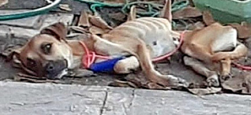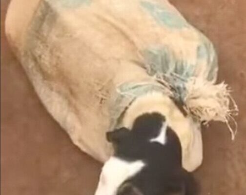 Momma dog found tied up in sack on abandoned road, when vet looks closer the dark truth is revealed
