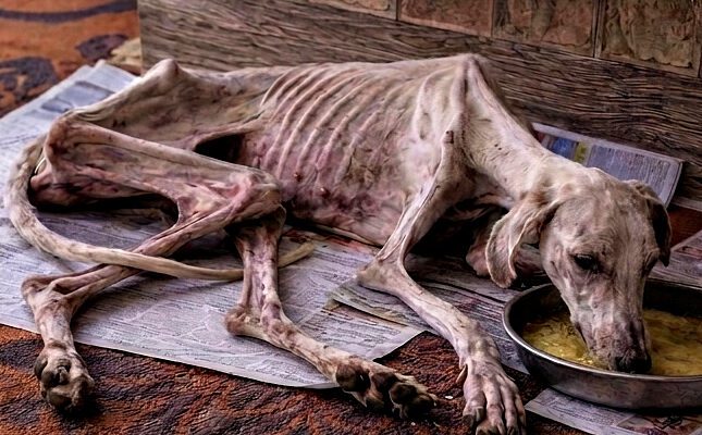 Someone sent me a video of her… A dog lying on the ground, so weak she could barely move, her body nothing but skin and bones, covered in w.