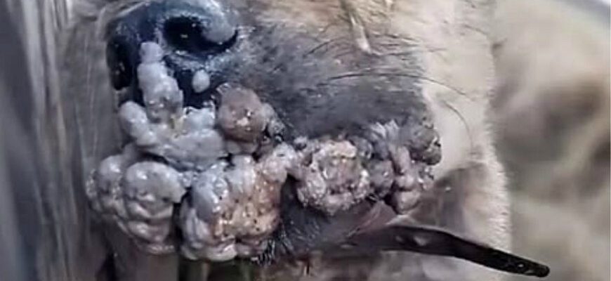 A video of a skinny puppy with a noticeable tu.m σr on its face s.t ∪nned internet users: its every step was accompanied by trembling, and its eyes, filled