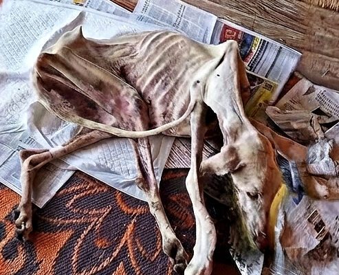 A woman came across a homeless dog struggling to survive on an empty road. She was p.a ìnfully thin. Her bones pressed against her skin.