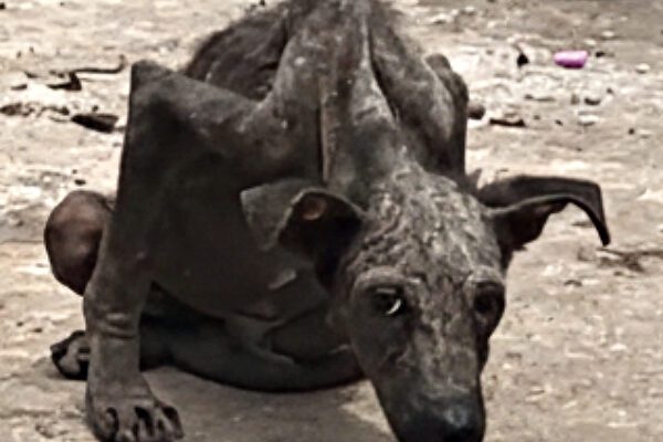Can you believe this is a dog? A stray, thin as a shadow, curled up inside a garbage station. I discovered him while throwing out trash.